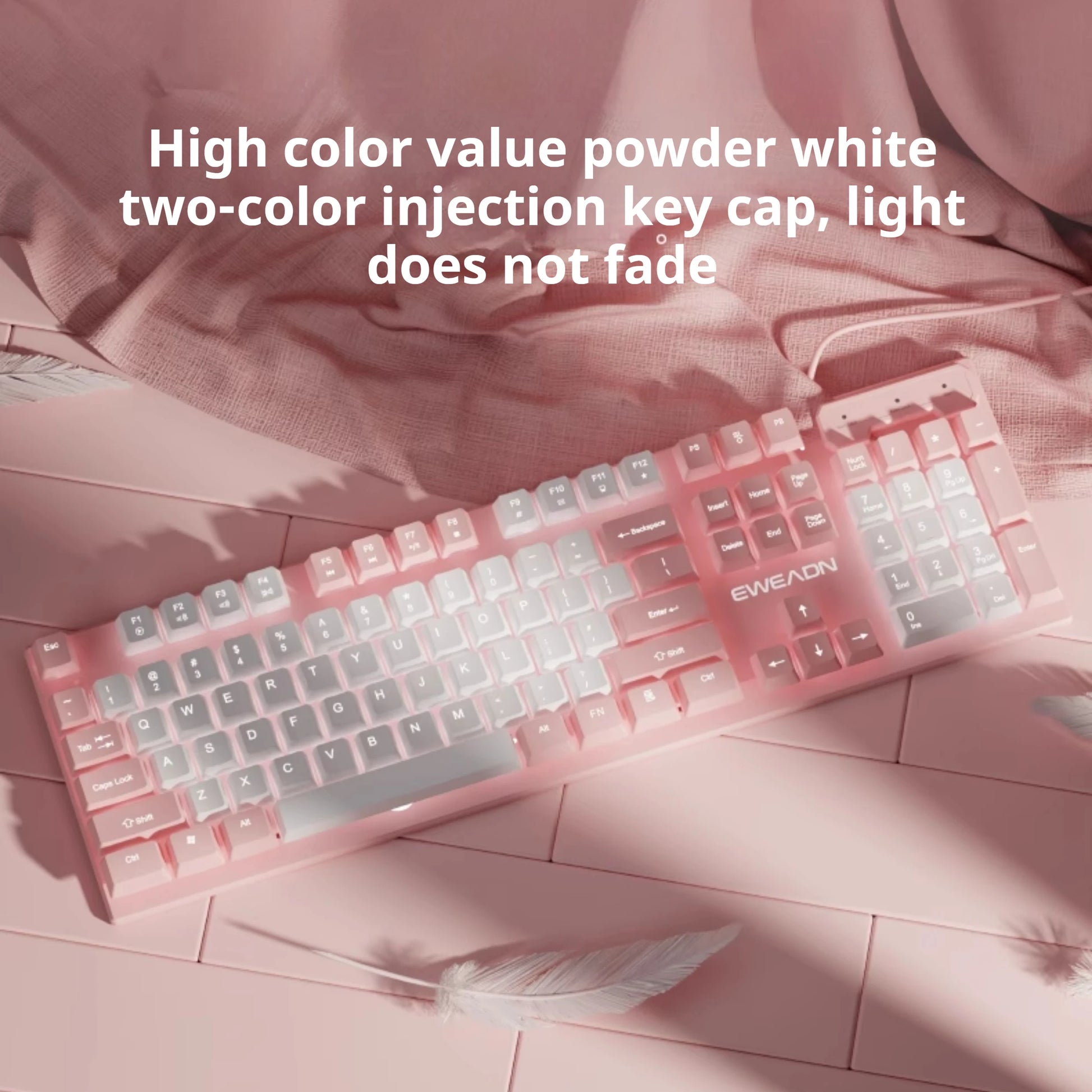 EWEADN GX320Z Pink Wired Office Keyboard -Silent, Ergonomic,LED Backlighting, High-Precision for Gaming, Office, Laptop/PC